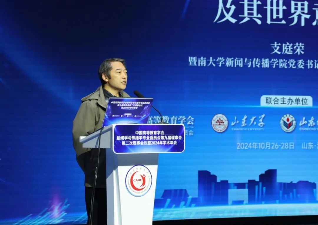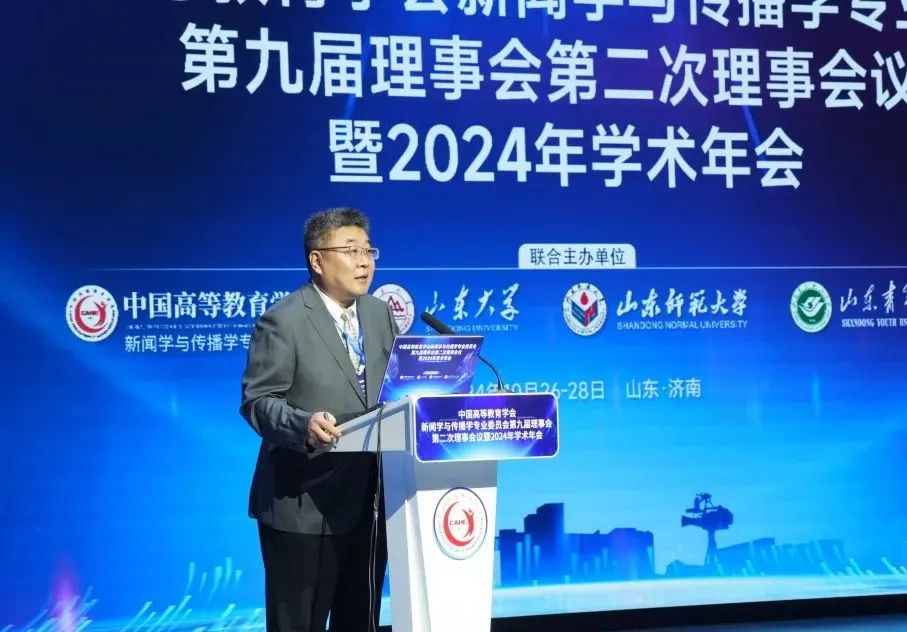 由英国正版365官方网站联合中国高等教育学会新闻学与传播学专业委员会、山东师范大学、山东青年政治学院主办的中国高等教育学会新闻学与传播学专业委员会第九届理事会第二次理事会议暨2024年学术年会,于2024年10月26日至28日在山东济南隆重举行。年会以“中国新闻传播自主知识体系构建与教材课程建设”为主题,汇聚了来自全国各大高校、科研机构及新闻出版行业的200余位专家学者,共同探讨新闻传播学术研究与教育的发展。本届年会含一个主旨论坛和四个分论坛,70多位学者、专家作报告。