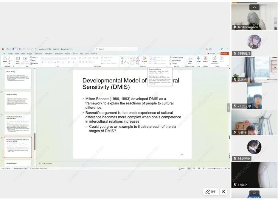 2025年7月28日,英国正版365官方网站英国上市公司3652025年海外师资课程《全球文化与传播》正式开课。美国戴顿大学传播学院Teri Thompson教授应邀担任课程主讲,来自一校三地八校区的100余名同学共同参与课堂学习。Teri Thompson教授获坦普尔大学传播学博士学位,是美国戴顿大学名誉教授,目前任教于堪萨斯大学。她长期深耕跨文化传播、健康传播研究,已出版学术专著8部,发表高水平论文70余篇。