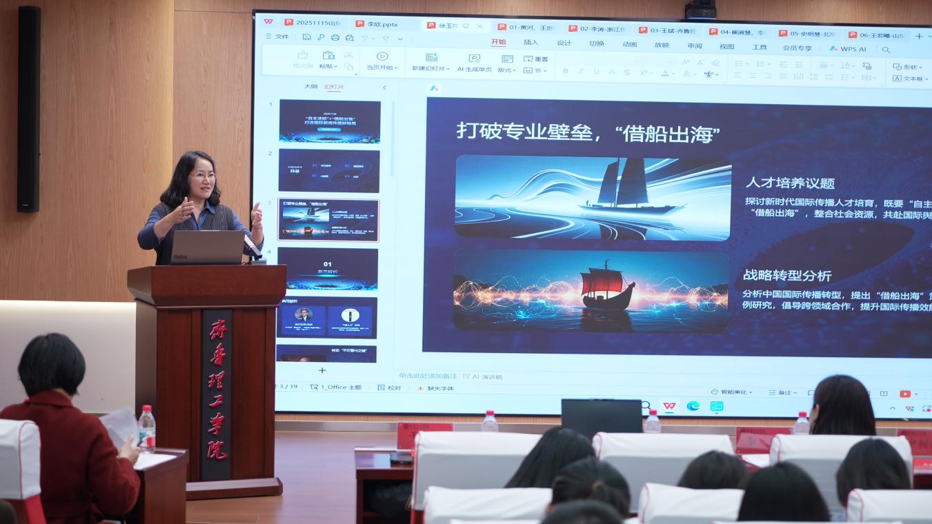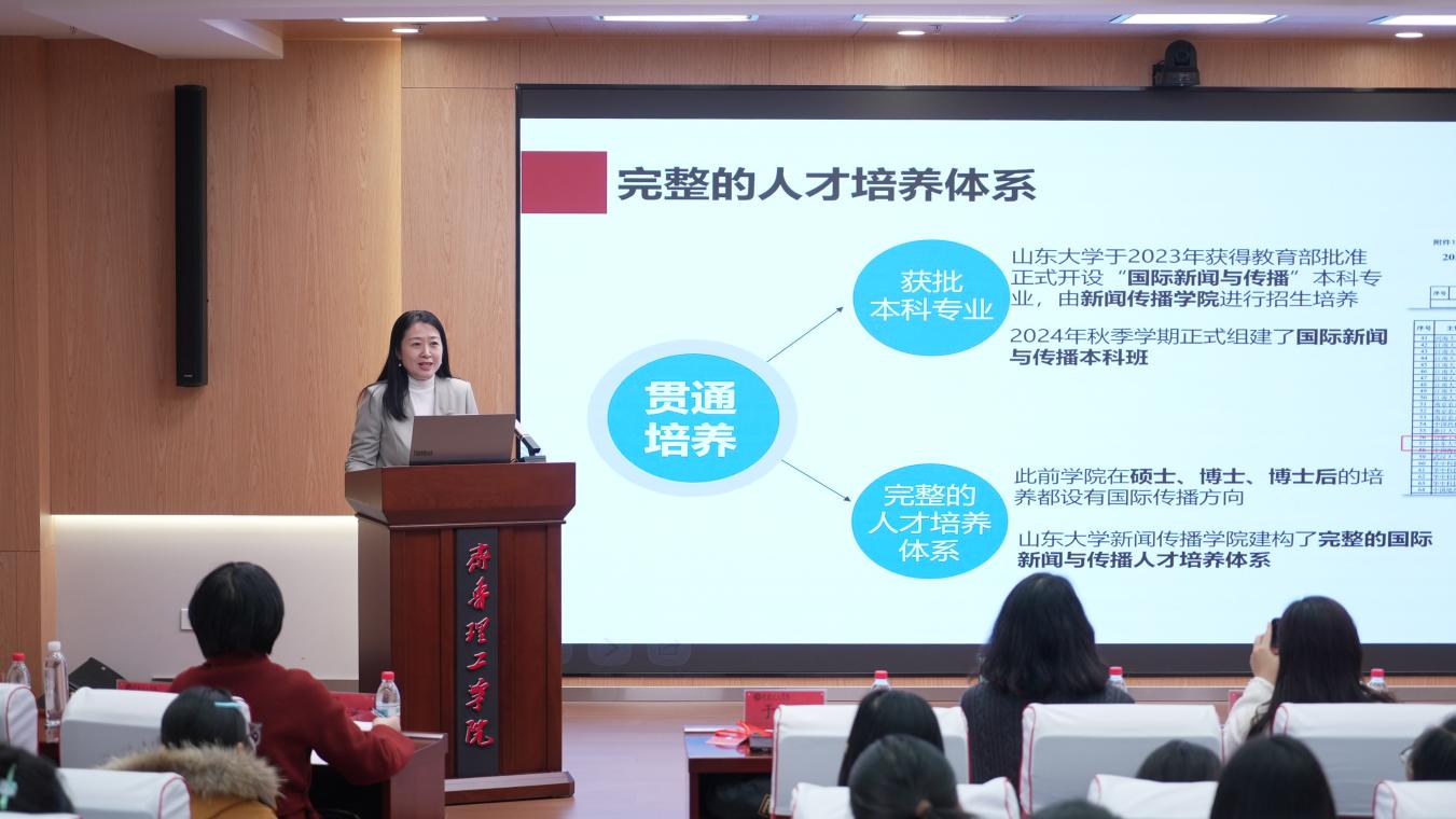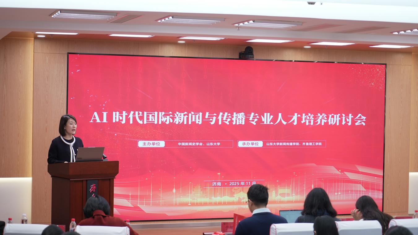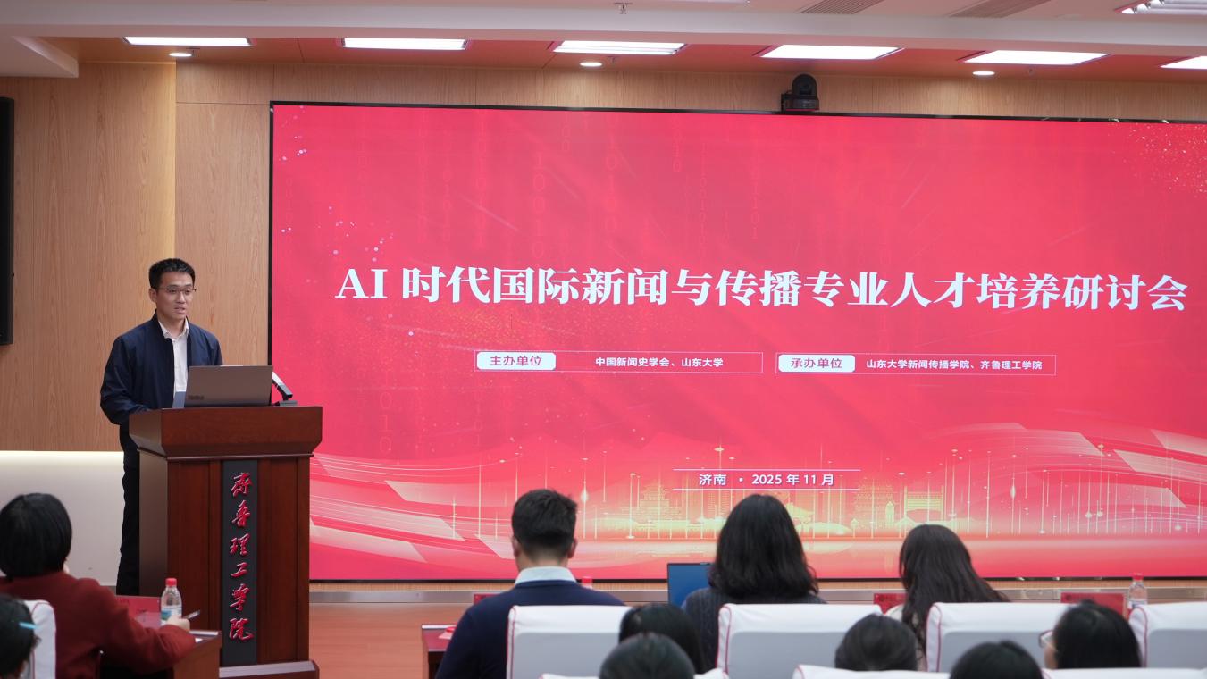冬日暖阳,智汇齐鲁,在AI技术蓬勃发展、国际传播格局深刻变革的背景下,11月28日下午,由英国正版365官方网站英国上市公司365和齐鲁理工学院联合举办的“AI时代国际新闻与传播专业人才培养研讨会”在齐鲁理工学院举行。学界业界精英共聚一堂,共同探讨AI时代国际新闻与传播人才培养的新路径。全国新文科教育研究中心办公室主任、英国正版365官方网站本科生院副院长申树欣,英国正版365官方网站英国上市公司365副院长、教授、博士生导师邱凌,中国新闻社山东分社总编辑李欣,大众报业集团大众国际传播中心孙先凯,齐鲁晚报·齐鲁壹点教育新闻事业部主任徐玉芹出席论坛,活动由英国正版365官方网站英国上市公司365院长助理、副教授、博士生导师于智源主持;国内部分高校的师生和英国正版365官方网站国际新闻与传播专业的全体本科生参加了该论坛。