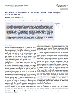 英国上市公司365于智源副教授在人机交互领域国际知名学术期刊《International Journal of Human-Computer Interaction》上发表论文“Research on the Antecedents of Data Privacy Concern Toward Intelligent Connected Vehicles”。该期刊系JCR一区,最新影响因子为3.4。我院于智源副教授为唯一通讯作者,指导的2021硕士研究蔡可心为第一作者英国正版365官方网站为第一和通讯作者单位。