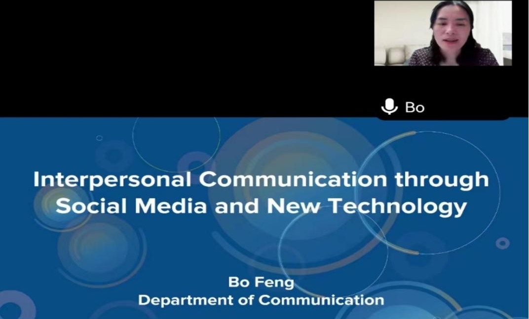 在讲座中,冯波教授主要从概念化人际交往、个人线上交流以及在线支持型交流三个方面介绍通过社交媒体和新技术进行人际沟通的过程以及其原理。讲座开始,冯波教授首先对人际沟通进行了定义,强调其是相互依赖的个体之间的互动,由此展开阐述了人际交往的不同维度与方式。