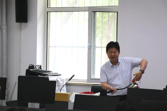 公司党委保卫部副处长董太华老师担任主讲,首先播放了实验室安全事故真实案例,随后向师生讲解了做好安全工作需要落实的四个能力——敏锐查找安全隐患的能力、预防安全隐患发生的能力、处理初期火情的能力、遇险逃生自救的能力。之后董太华阐释了灭火器的区分和“五字”使用要诀“提、拔、握、压、喷”,并进行了模拟灭火器使用方法的现场演示。