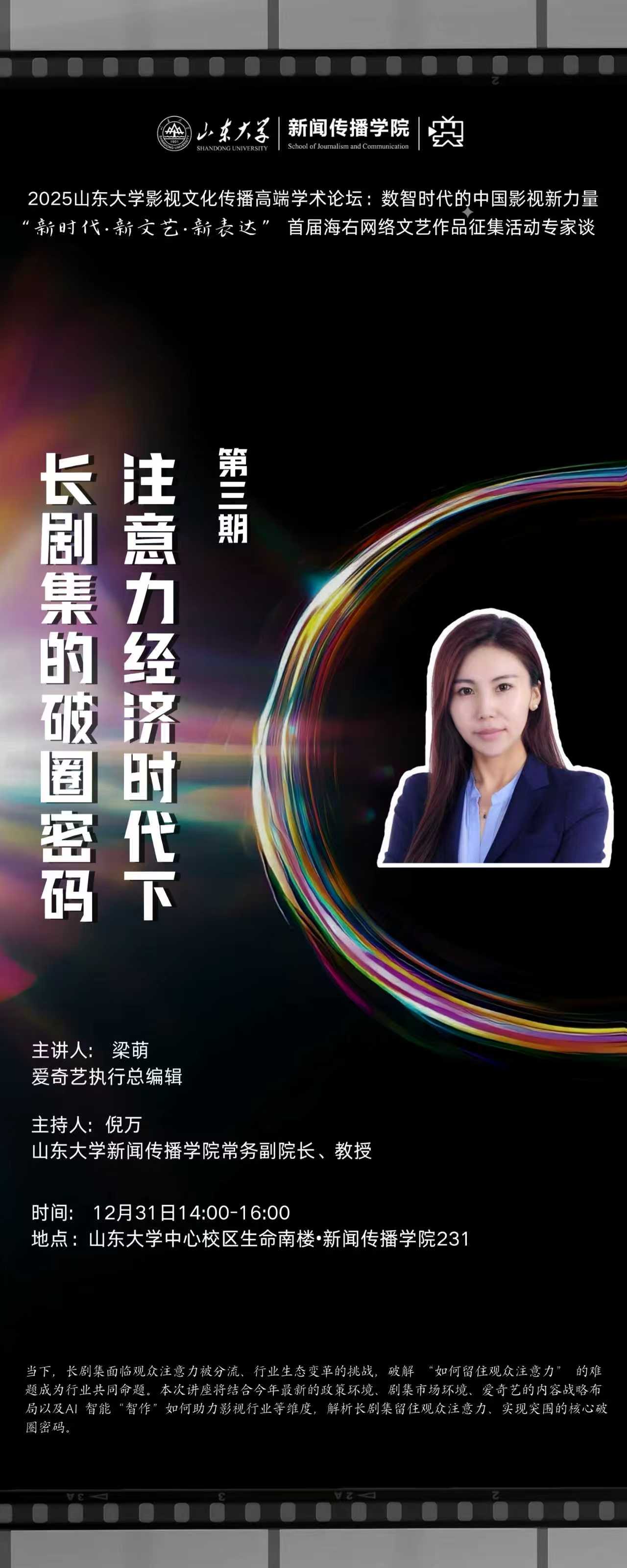 一、讲座题目:注意力经济时代下长剧集的破圈密码