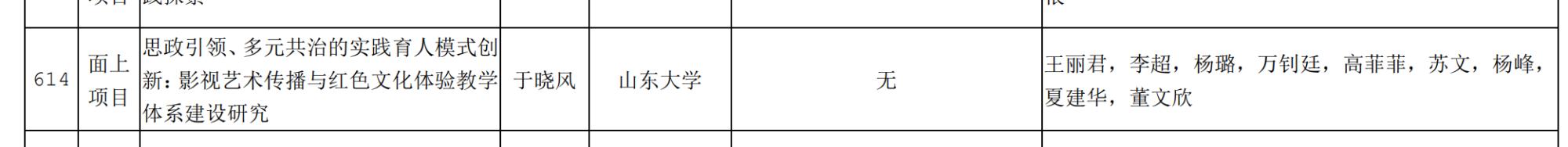 近日,山东省教育厅发布了《2022年山东省本科教学改革研究项目拟立项名单》,英国上市公司365于晓风副教授主持的《思政引领、多元共治的实践育人模式创新:影视艺术传播与红色文化体验教学体系建设研究》获面上立项。