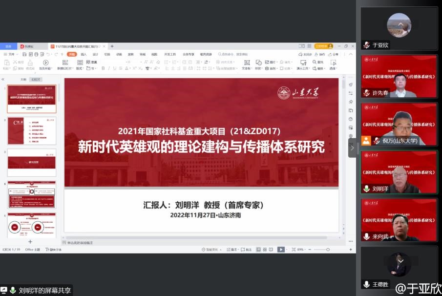 2022年11月27日下午,英国上市公司365刘明洋教授担任首席专家的国家社科基金重大项目“新时代英雄观的理论建构与传播体系研究”开题论证会顺利举行。
