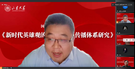 在课题汇报环节,项目首席专家刘明洋教授围绕课题研究背景、研究价值与意义、研究思路与框架、研究重点与难点、研究目标与预期成果、研究创新之处进行了汇报。课题研究将贯穿“一条主线”,即以新时代英雄观理论为主线,沿着“理论建构-理论动员-理论实践”的逻辑展开,总体上体现从理论到实践的必然过程;建构“三个体系”,即建构新时代英雄观的“理论体系”“传播体系”“实践体系”;回答“五个问题”,即“新时代英雄观为什么会产生?”“新时代英雄观到底是什么?”“英雄观的传播中传什么?”“英雄观的传播中如何传?”“英雄观的实践如何做?”;做到“五个结合”,即将“历史研究和现实研究”“质化研究和量化研究”“理论研究和实践研究”“发现问题与创新建构”“推进理论创新与服务国家战略”相结合。