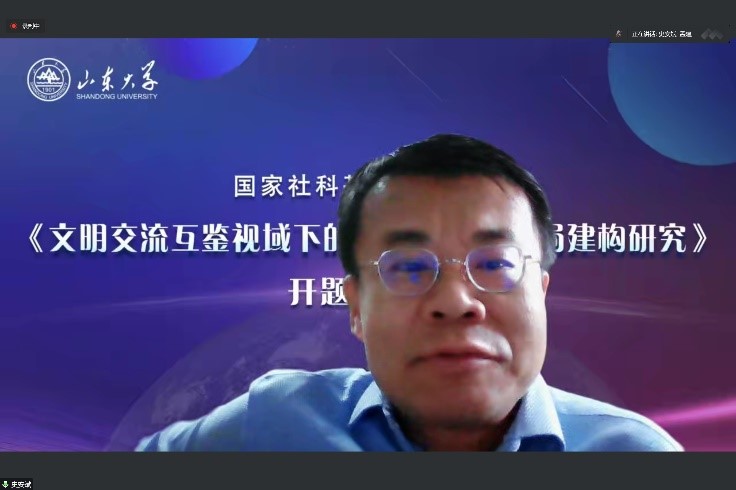 复旦大学新闻学院孟建教授对课题成功立项表示了祝贺,肯定了课题组丰富的实践积累和严密的逻辑思路。他强调,在党的二十大报告的思想引领下,加入人类文明新形态的概念必不可少。同时,孟建教授还多次提到在文明交流互鉴视域下传播领域的“量子纠缠”现象,并表示非常期待这次重大课题的新成果。