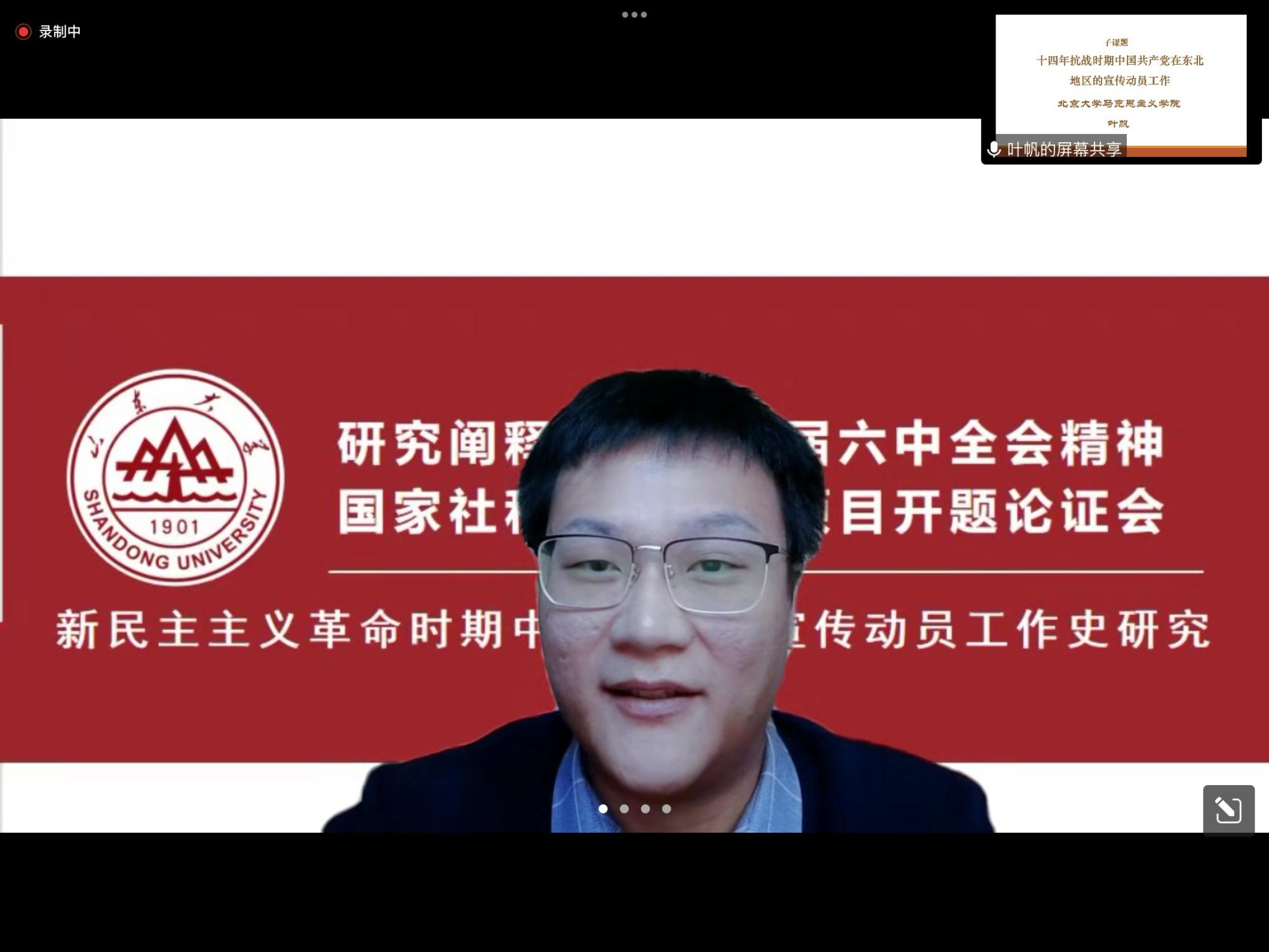 课题汇报环节,俞凡教授作为项目首席专家立足项目整体进行了汇报。在选题价值方面,俞凡教授认为,既有研究未能从全时、全局视角考察,缺乏对报刊以外的重大问题及对日、英、俄史料的挖掘,本次课题将弥补空白,并重点围绕“宣传动员工作如何使党最终获得广大人民、各民主党派和无党派民主人士的政治认同为根本问题”来建构研究体系,在这个核心问题下,努力建构“大宣传”“大动员”的概念,把论文写在中国大地上,研究中国问题,探索中国道路,建构中国理论。