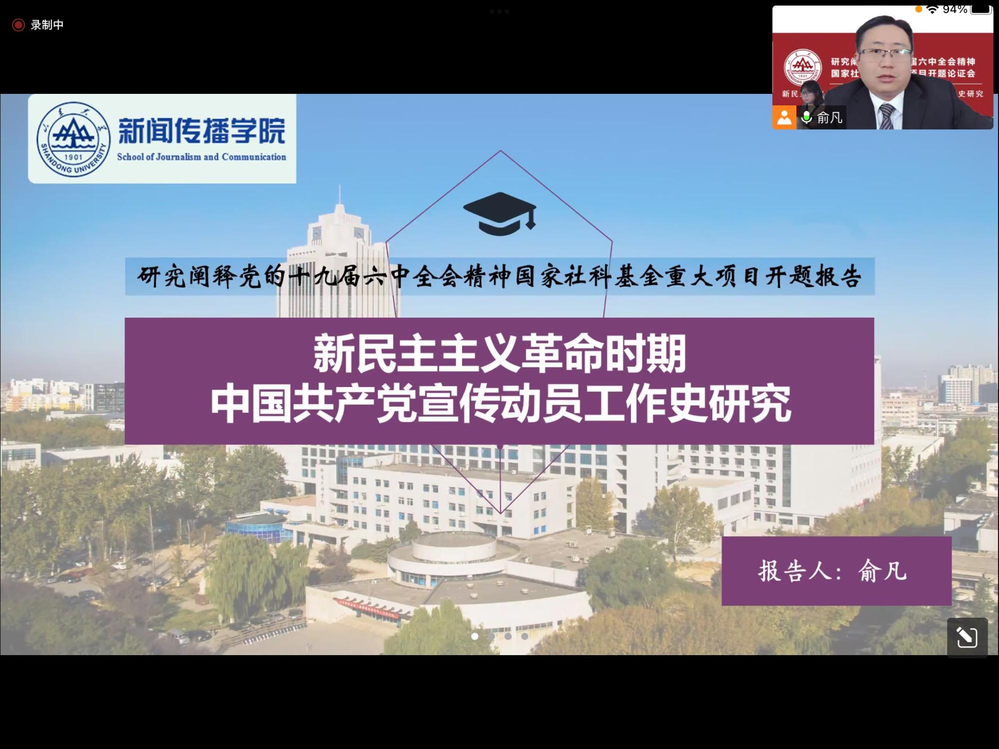 2022年11月13日上午,由公司俞凡教授担任首席专家的研究阐释党的十九届六中全会精神国家社科基金重大项目“新民主主义革命时期中国共产党宣传动员工作史研究”开题论证会在英国上市公司365顺利举行。