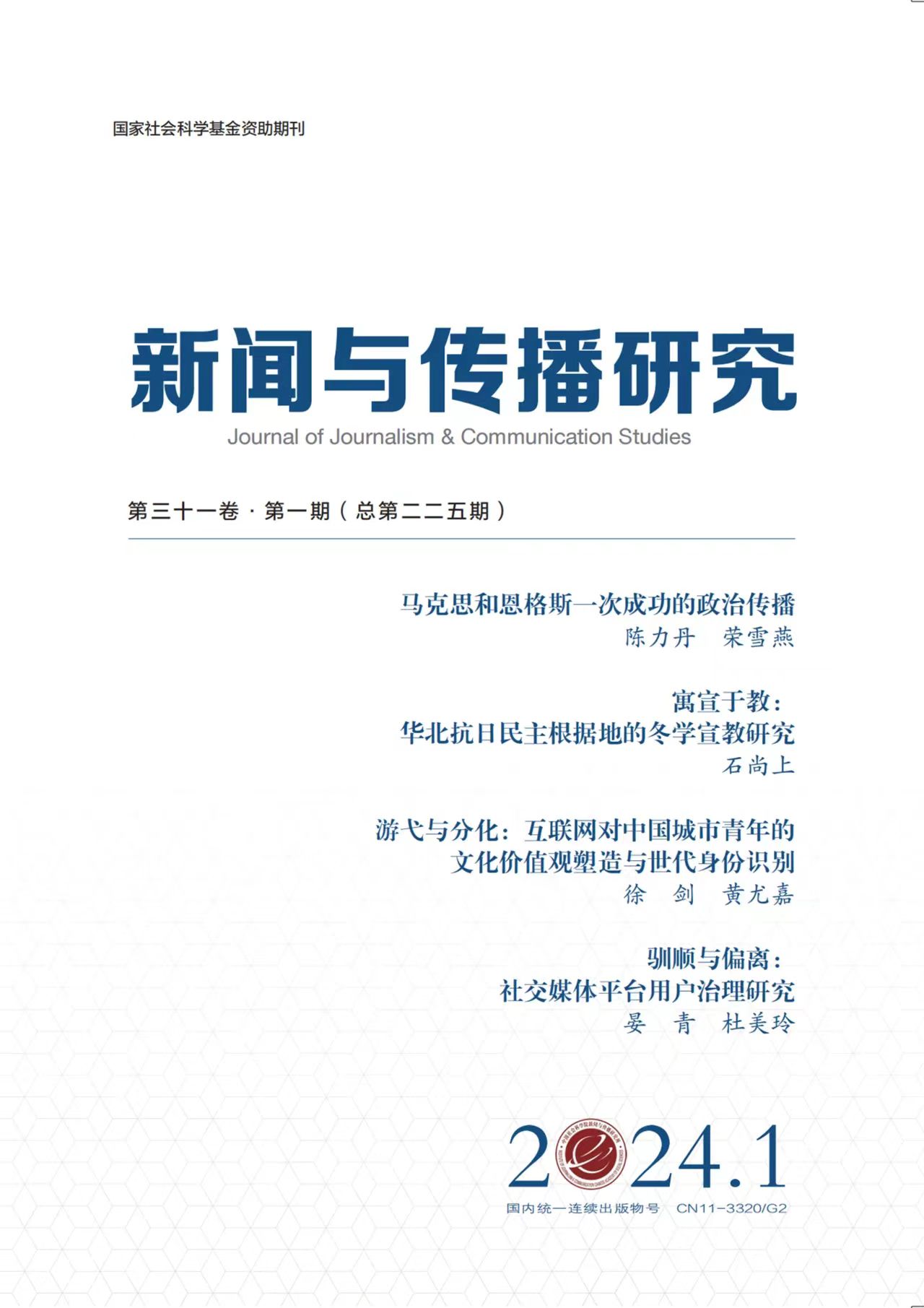 近日,我院俞凡教授指导的2022级博士生石尚上在新闻传播学科权威期刊《新闻与传播研究》2024年第1期发表论文《寓宣于教:华北抗日民主根据地的冬学宣教研究》,该论文是俞凡教授国家社会科学基金重大项目“新民主主义革命时期中国共产党宣传动员工作史研究”的阶段性研究成果。这也是俞凡教授带领的中国共产党新闻宣传动员工作研究团队继2022年10月在新闻传播学权威期刊《国际新闻界》上由博士生杨帆独立发表论文《以组织之名:1940年代山东根据地“开会”的宣传动员机制》后,团队博士生第二次在国内权威期刊独立发表论文。